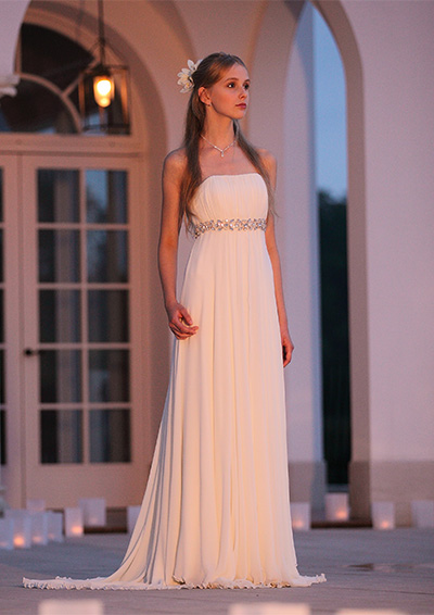 体のラインを強調させるものから胸の下すぐで切り替わるものまでデザインは様々ありますが、Aライン程の広がりはなくすっきりとしているますが、マーメイドラインよりもフレアなのが特徴です。