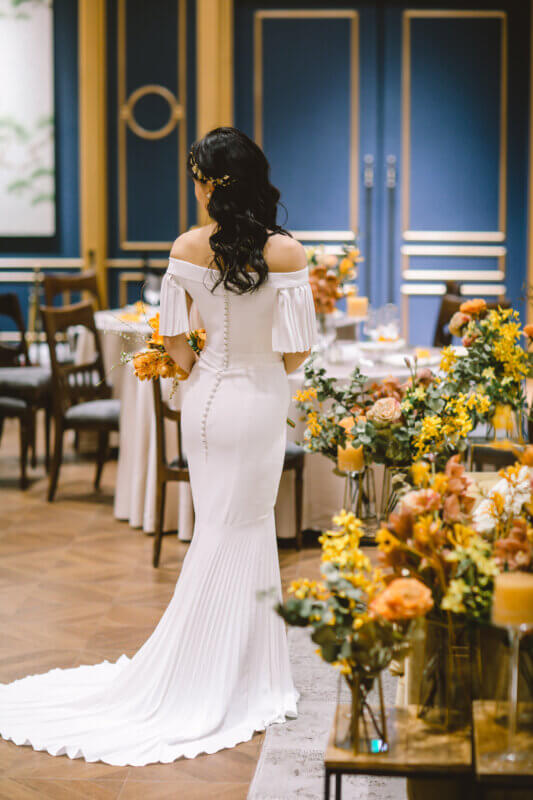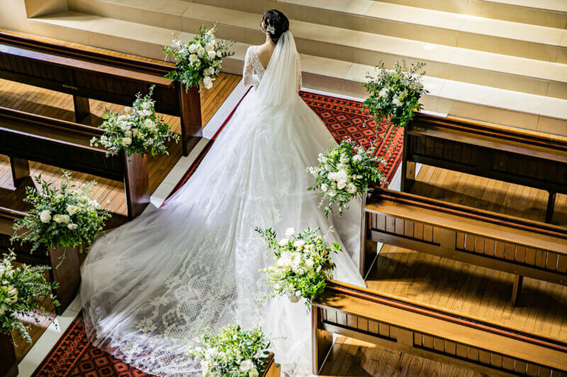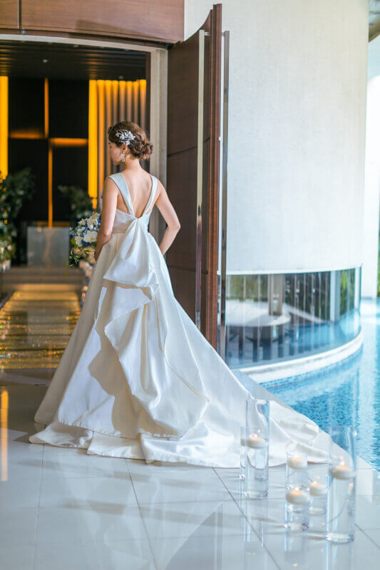 • 挙式ではクラシカルなシルエットで気品ある花嫁に