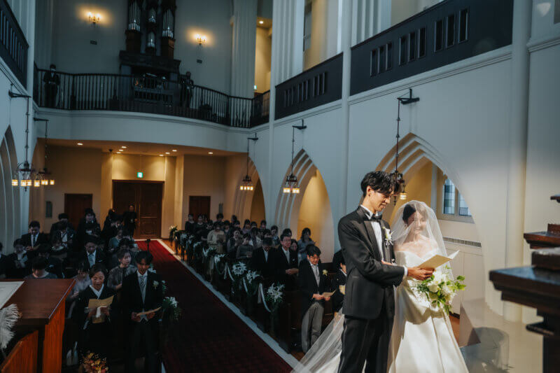 アビーチャーチ:大聖堂の厳かな空間で、挙式のような神聖な一枚を
