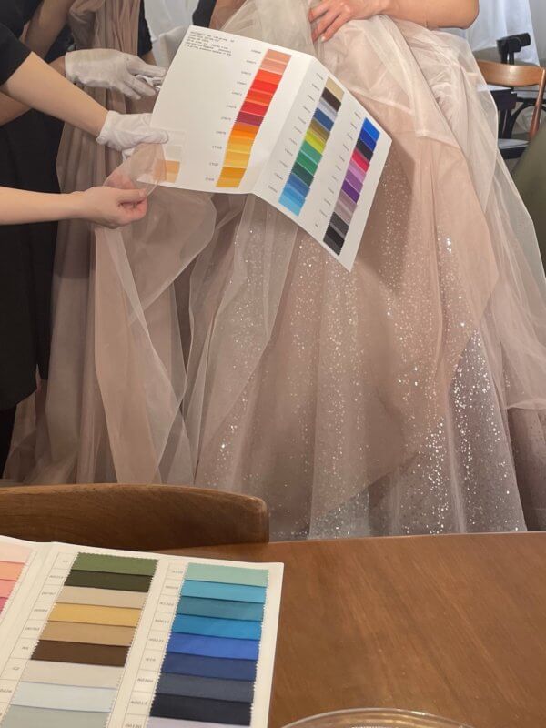 一組様の衣装に関わる事はすべて、スタイリストとサポートスタッフが行っています。
