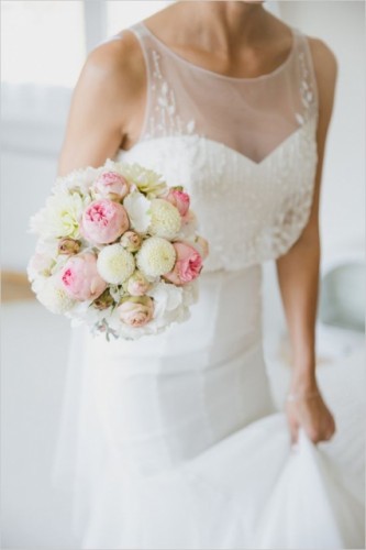 お水がたれてドレスにお花のシミが出来てしまう可能性があるのでぐっと腕に力をいれ、ブーケが下を向いてしまわない様に注意して下さい。
