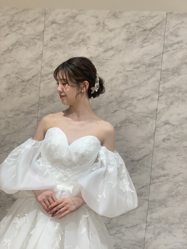 こちらのドレスはパフスリーブが取り外せる、2wayのドレスなので
