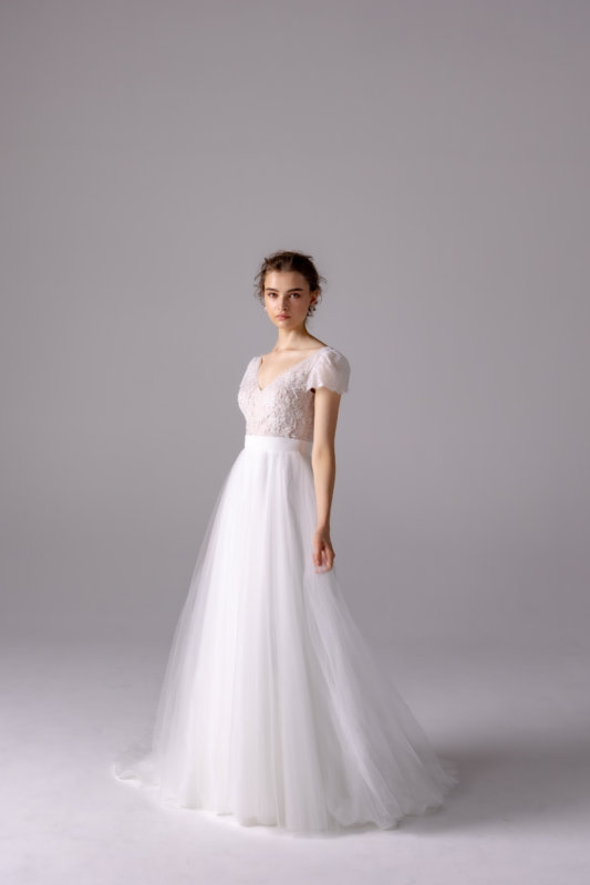 妖精のような、柔らかい雰囲気がゲストの目を引くスレンダードレス。