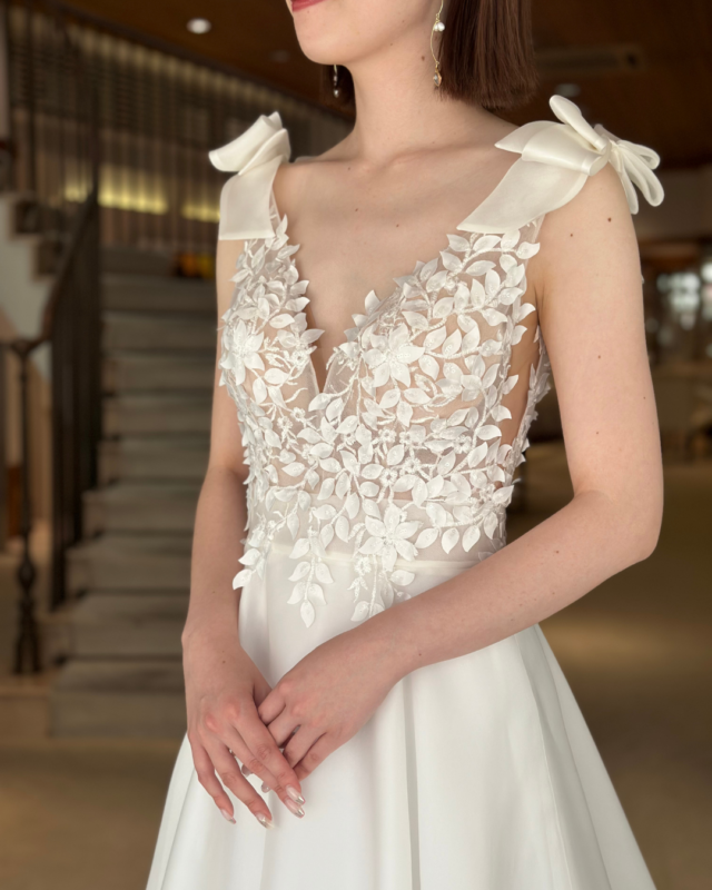 そんな春の結婚式には、軽やかさと品の良さを兼ね備えたウェディングドレスがよく映えます。