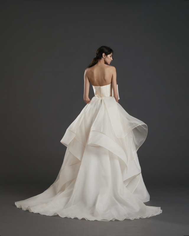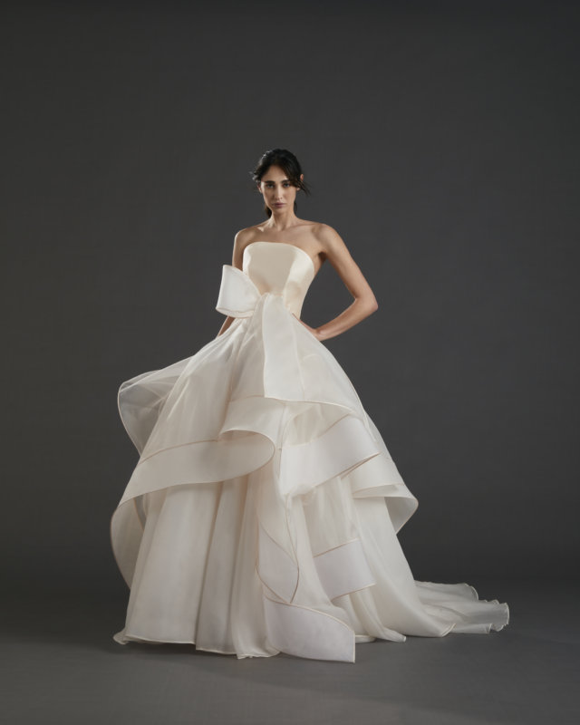 大きく波打つダイナミックな動きが印象的で、ドラマティックなドレス姿を実現することができます。