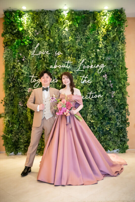 新郎様はベージュのタキシードを合わせて、全体を軽やかに。