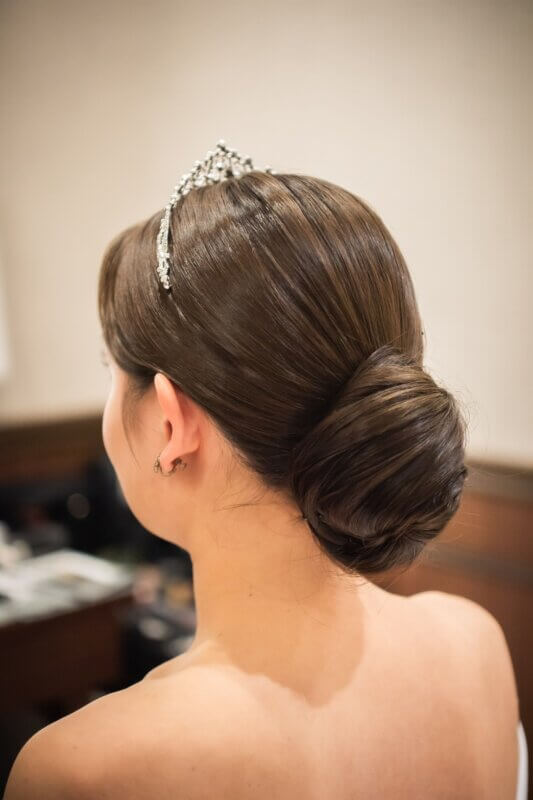 髪の毛をつややかにまとめる事で上品で凛とした印象を与え、
