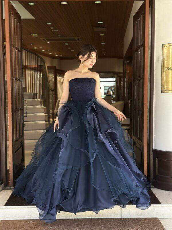 淡いカラーで儚さを演出するのも素敵ですが、濃いめブルーで凛とした透明感を引き出すのもブルべ花嫁様ならではの魅力です。