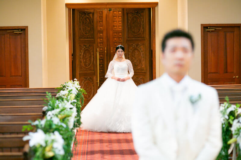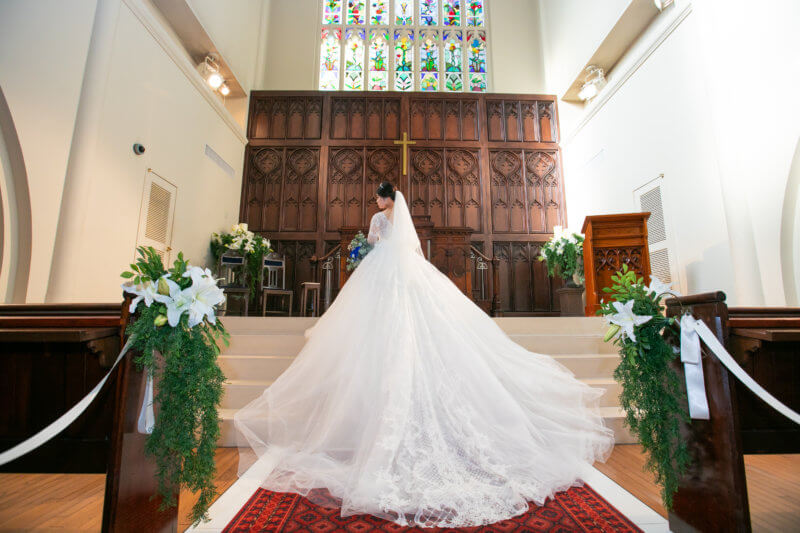 ステンドグラスから差し込む光に包まれて、映画のワンシーンの様な結婚式が叶います。