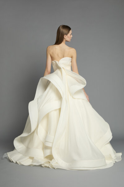 動くたびに空気を含み表情を変えるシルエットが、花嫁の存在感を静かに引き立てます。